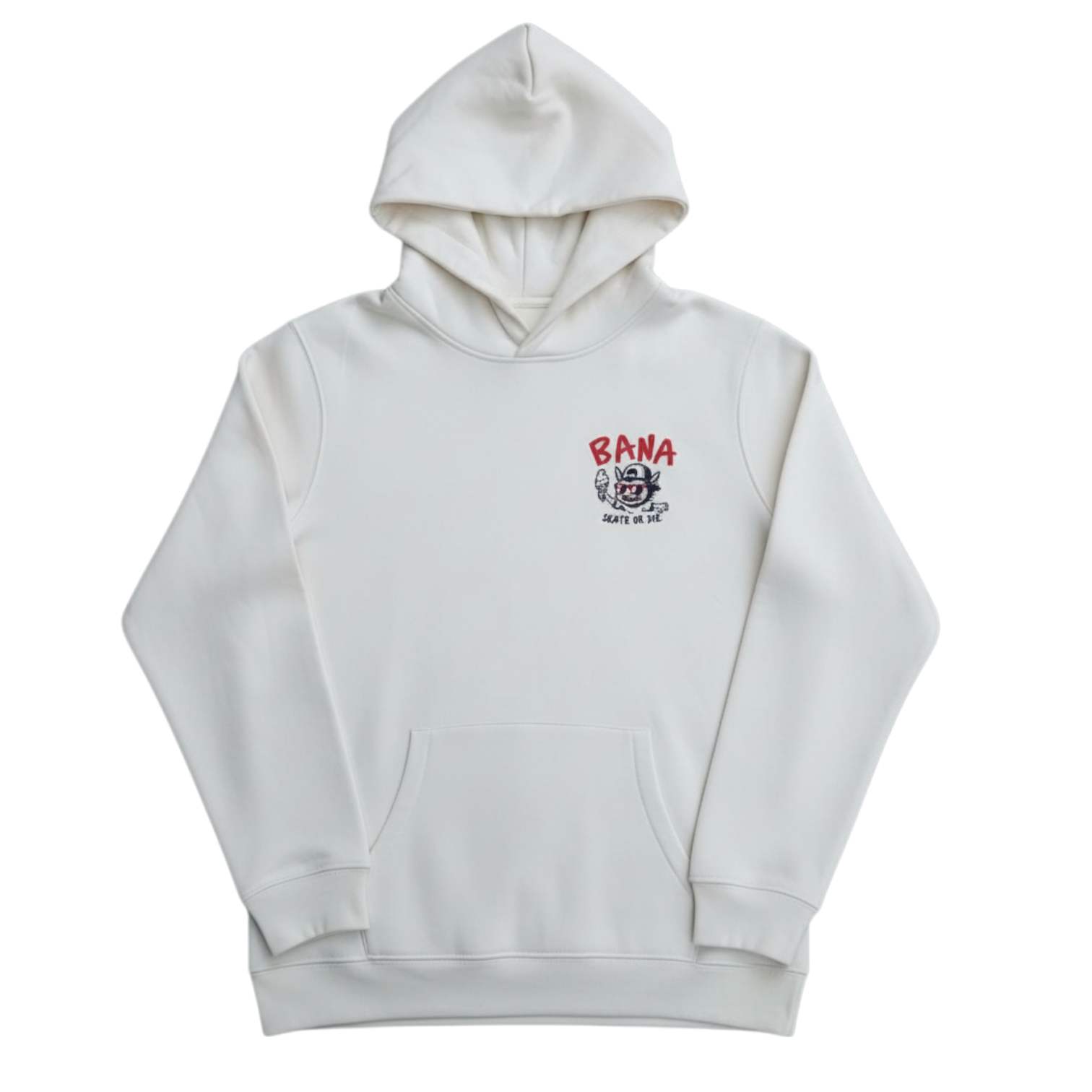 O hoodie Bana "Skate or Die" KIDS junta um conforto excecional a um visual cheio de personalidade, inspirado no universo colecionável das figuras Labubu. Com uma estampa frontal detalhada e irreverente, apresenta o icónico Labubu na sua versão “Bana”, combinando atitude, humor e estilo urbano. Fabricado em tecido suave e resistente, garante um ajuste confortável e perfeito para o dia a dia. O capuz ajustável, o bolso canguru e os acabamentos reforçados oferecem funcionalidade e durabilidade, tornando esta peça ideal para qualquer ocasião casual.