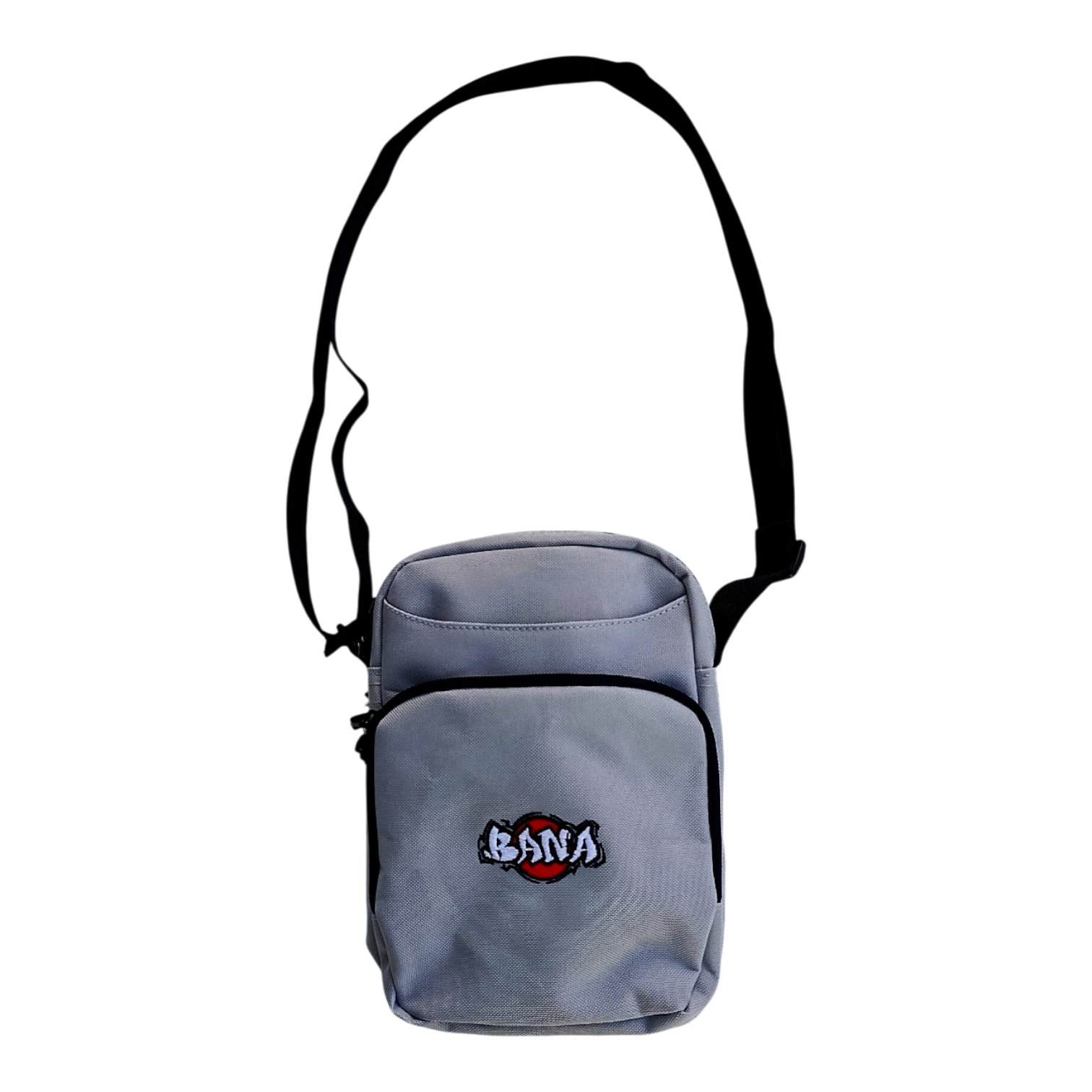 O fecho de correr em metal e a alça ajustável garantem praticidade, enquanto o patch redondo do logo BANA (vermelho e branco) bordado na frente assegura o toque de marca.