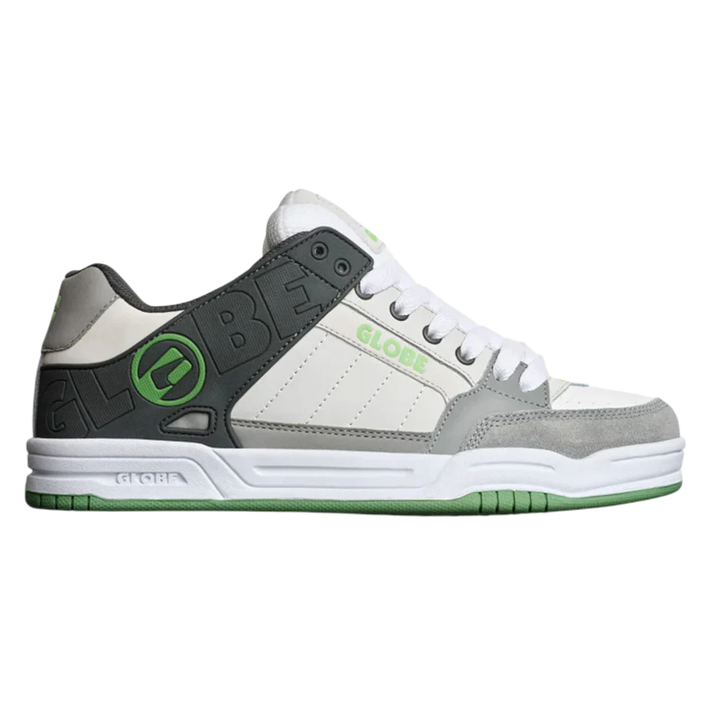 O Tilt na cor Lunar/ Cinza/ Verde, o clássico modelo de skate da Globe, apresenta uma gola externa moldada em TPR para suporte e durabilidade, e um padrão de sola S-Trac™ para maior aderência e sensibilidade ao skate.